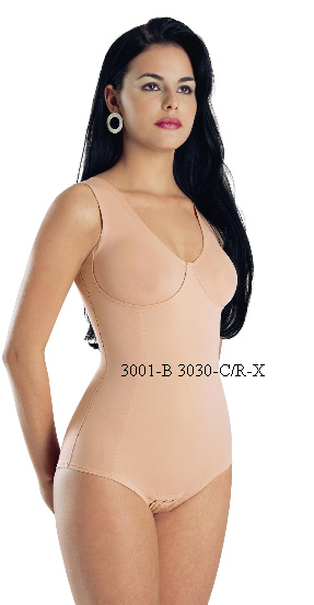 Descripción: 3001-B/3030-C/R-X: Body Modelador, Copa prehormada con costuras, Tiras Anchas, Resfuerzo en el Torso, Abertura entre las piernas con broches. |