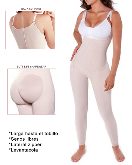 Descripción: Tela Anti-Bacterial. Faja senos libres control powernet recomendada para despues de la cirugia. Faja modeladora de compresión fuerte, controla la cintura, abdomen, espalda, cadera entre piernas, y vientre bajo. Resalta el busto. Recomendado: Uso diario., post-lipo, post-parto, tummy tuck, faja modeladora. Largo hasta el tobillo, levanta la cola. Zipper lateral, con ganchos adentro para ajustar. Reduce y mantiene la firmeza en su adbomen. Corrige y ayuda su postura. Realza los gluteos, busto, y moldea la silueta de su cuerpo. Muchas mujeres lo usan diaramente para tonificar y reducir cm's de su cintura, caderas y piernas mientras en uso. Abertura entre las piernas para su convenencia. |