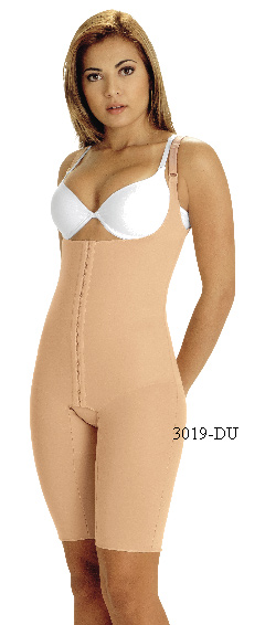 Descripción: 3019-DU: Body Modelador arriba de la rodilla, Doble resfuerzo en la faja completa, Cierre delantero, brassier no incluido, Tiras Ajustable, Abertura entre las piernas.