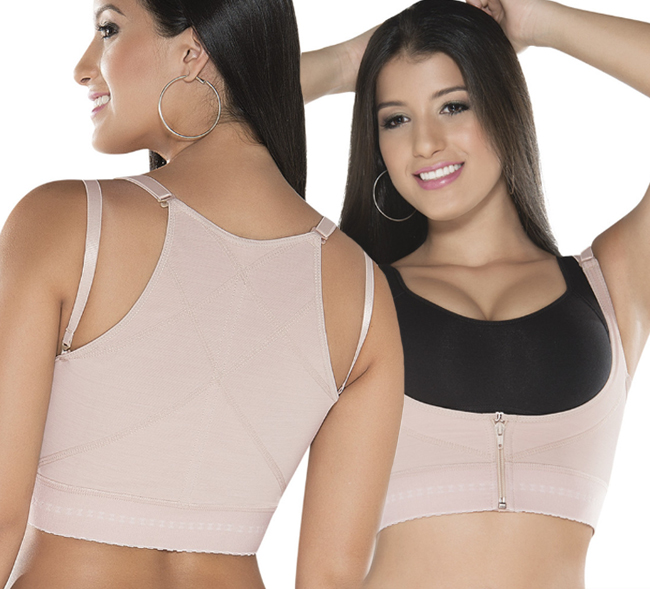 Description: Natural Bust Lift Visually for any occasion. Back posture corrector maintaining a healthy straight back. Adjustable Straps. Vest that lift up the breast. Hooks in front. Made with powerflet |