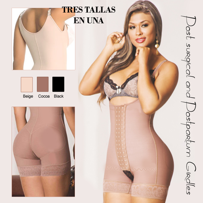 Descripción: Faja de espalda alta  con tirantes anchos ajustables recomendada para proceso post operatorios de cirugia plástica y estética con 3 Niveles de ganchos al frente para ajustar.  Elimina líquidos debido a la alta compresión y  acelera la desinflamacion. Faja lipo modeladora. Super extra compresión controla cintura, abdomen y cadera. Control de espalda, y vientre bajo. Resalta el busto.  Abertura entre las piernas para su convenencia. Diseño original post-quirúrgico/post-parto. Corrige la postura. Fabricada en un textil anti-bacterial de alta calidad y maxima compresión (POWERNET) que permite la perfecta transpiración del cuerpo y ejerce un masaje continuo sobre la piel reduciendo la celulitis.  Colores: Beis - Cocoa - Negro